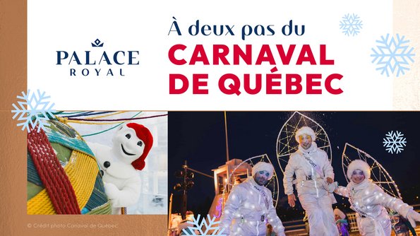 Ayant pignon sur rue en plein cœur du Vieux-Québec, le Palace RoyalCe lien s'ouvrira dans une nouvelle fenêtre de Les Hôtels JAROCe lien s'ouvrira dans une nouvelle fenêtre, est au centre même des activités du Carnaval. On ne saurait trouver un meilleur pied-à-terre pour participer pleinement à cet événement regorgeant d’activités toutes plus excitantes les unes que les autres. Idéalement situé près du Parlement du Québec et de la place D’Youville, ce joyau au cœur du Vieux-Québec, sera la plaque tournante de votre séjour à Québec et vous permettra d’être à quelques pas des festivités tout en ayant un endroit pour vous déposer et relaxer. Et après une longue journée à festoyer, un bon repas au Beffroi SteakhouseCe lien s'ouvrira dans une nouvelle fenêtre, ou un verre au Bar le Fou du RoyCe lien s'ouvrira dans une nouvelle fenêtre, sera de mise avant le retour vers votre chambre douilletteCe lien s'ouvrira dans une nouvelle fenêtre pour un repos bien mérité. Ce sera un immense plaisir pour nous de vous accueillir pour cette fête des neiges unique au monde.