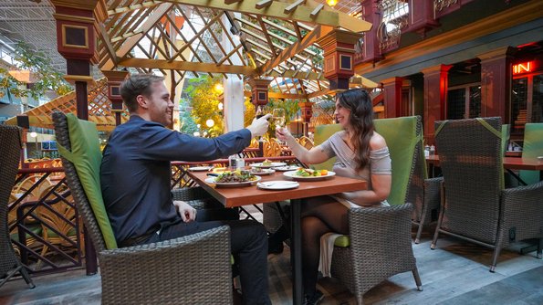 Discover the tropical décor of Restaurant Les PalmesThis link will open in a new window, with its jaw-dropping ambiance carrying you thousands of miles away from here. Its gastronomical, festive cuisine is sure to please everyone. From breakfast to the evening meal, you will fall under the spell of its sunny dishes and vacation vibe.