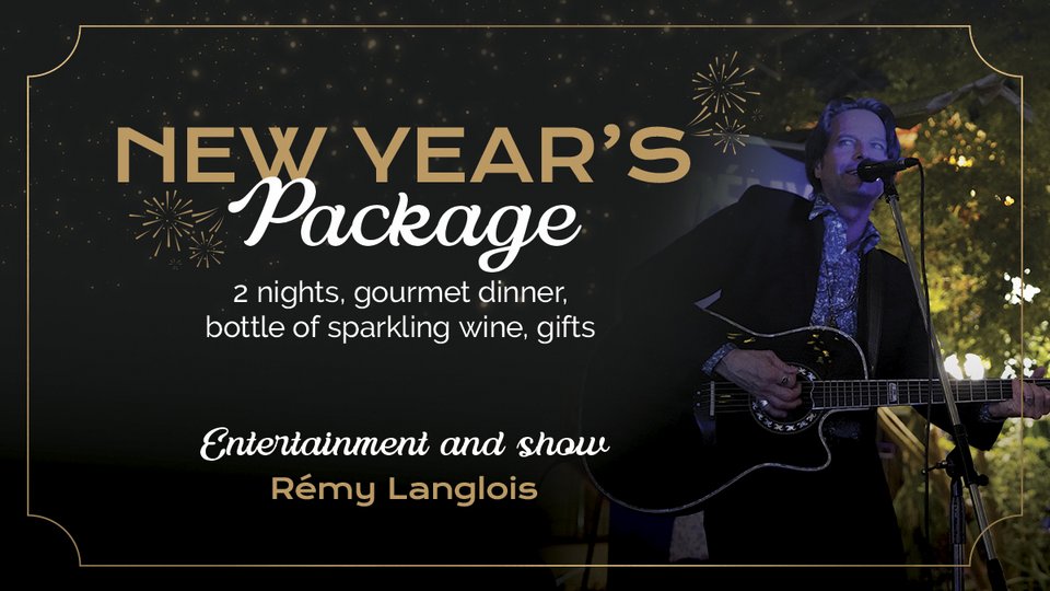 For an unforgettable evening, let yourself be carried away by the voice of the talented Rémy LangloisThis link will open in a new window, a Québec rock icon, who will set the hotel ablaze to welcome the New Year in style. Everything is in place for a memorable celebration filled with joy and energy!