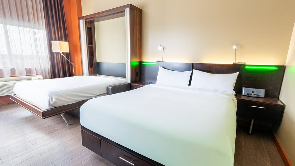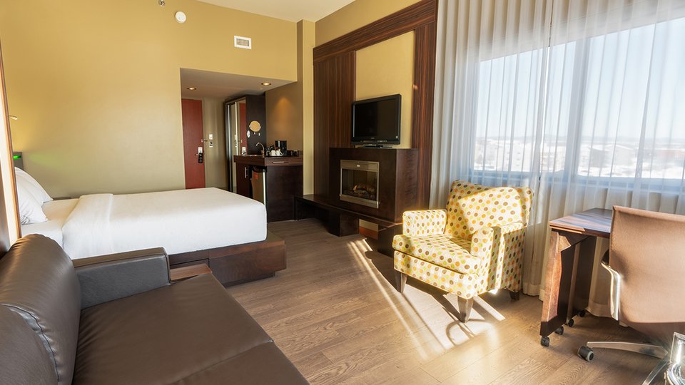 Chambre à deux grands lits, dont un escamotable se transformant facilement en canapé. La salle de bain est dotée d’une douche. Le foyer d’ambiance assure une atmosphère feutrée.